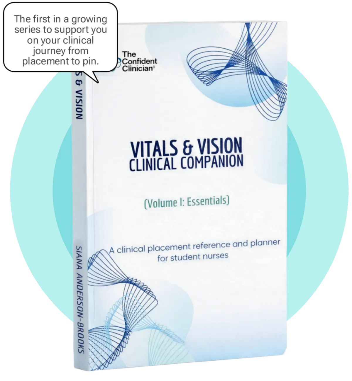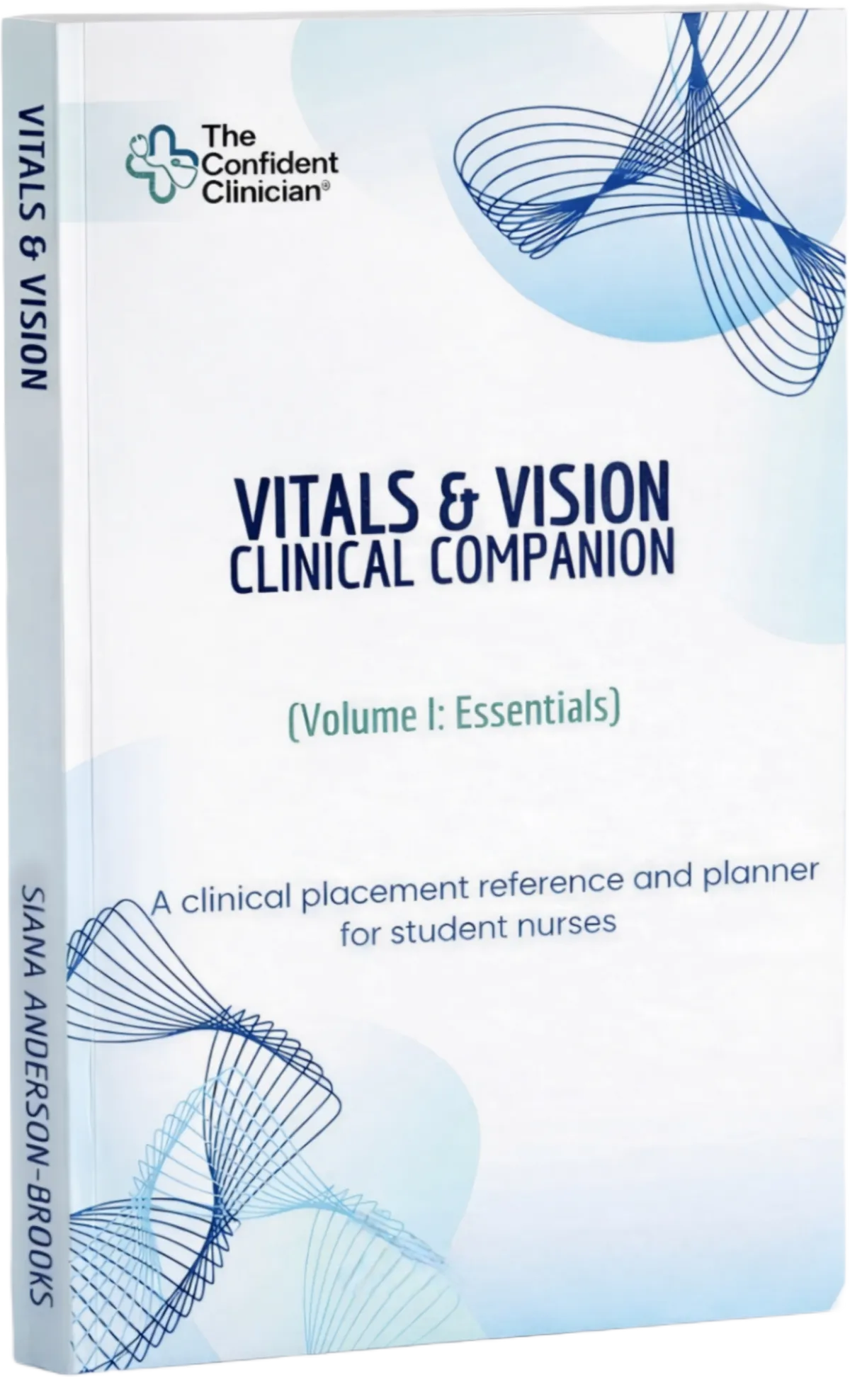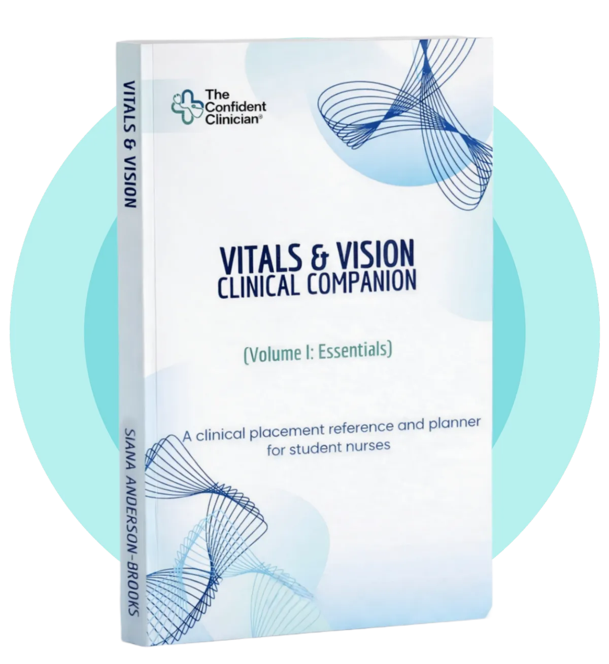 The Confident Clinician 'Vitals & Vision: Clinical Companion' was born out of real placement experience. It's the notebook I wish I had from day one - packed with clinical tools, cheat sheets, and space to reflect and stay organised, all in one sleek place.